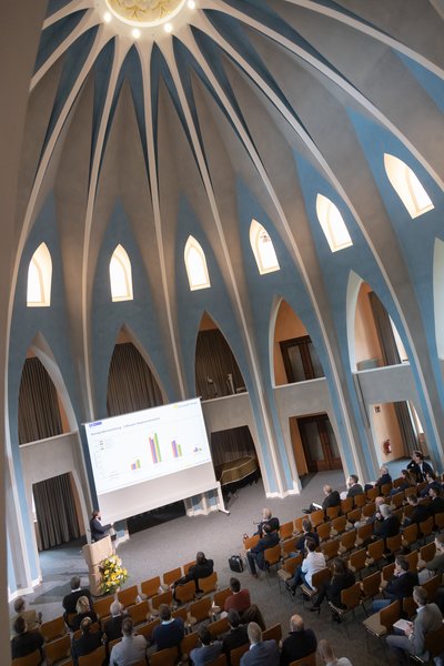 Mit 270 Teilnehmern war das 4. Formstoff-Forum 2023 in Clausthal-Zellerfeld eine große Veranstaltung. Um den Bedarf an Raumkapazitäten zu decken, wurden sowohl die Aula für zwei Sessions als auch ein zusätzliches Zelt genutzt, in dem Aussteller ihre Produkte präsentierten und das Catering untergebracht war. Diese kreative Lösung ermöglichte einen reibungslosen Ablauf der Veranstaltung und bot den Teilnehmern ausreichend Platz für den Austausch von Wissen und Ideen.