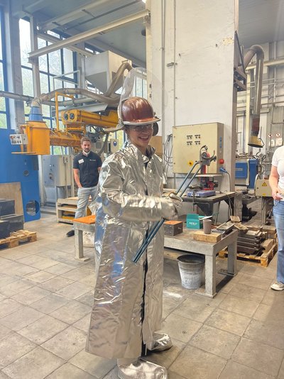 Nach einer Begrüßung durch den Institutsdirektor Prof. Spitzer wurde den potentiellen Studentinnen kurz der Bachelorstudiengang MaWi/Wt und dessen große Flexibilität vorgestellt. Anschließend erklärte ein Wissenschaftler aus der Prozessmetallurgie den spannenden Weg vom Sand zum Computerchip. In der Gießereitechnik durften die Schülerinnen selbst Namensanhänger mit flüssigem Aluminium gießen und mit gebührendem Abstand spüren, wie warm 800 °C sind. Der Weg des Leichtmetalls führte sie anschließend in die Umformtechnik, wo sie den stärkenden Einfluss von Legierungselementen und den Vergleich zu anderen Materialien beim Walzen, Tiefziehen und im Zugversuch kennenlernten. Die Arbeitsgruppe Thermochemie und Mikrokinetik erklärte am Beispiel der Diffusion die faszinierenden Vorgänge im Inneren von Werkstoffen und was diese bewirken. Dies und die Wirkung der Umformprozesse konnten die jungen Frauen zum Abschluss in der Metallographie anhand von verschiedenen Mikroskopbildern dann sogar mit eigenen Augen sehen.